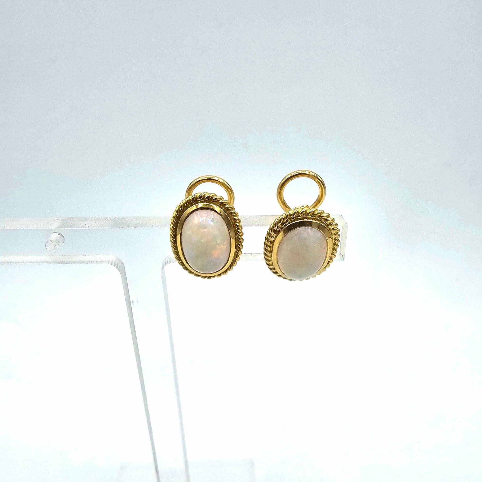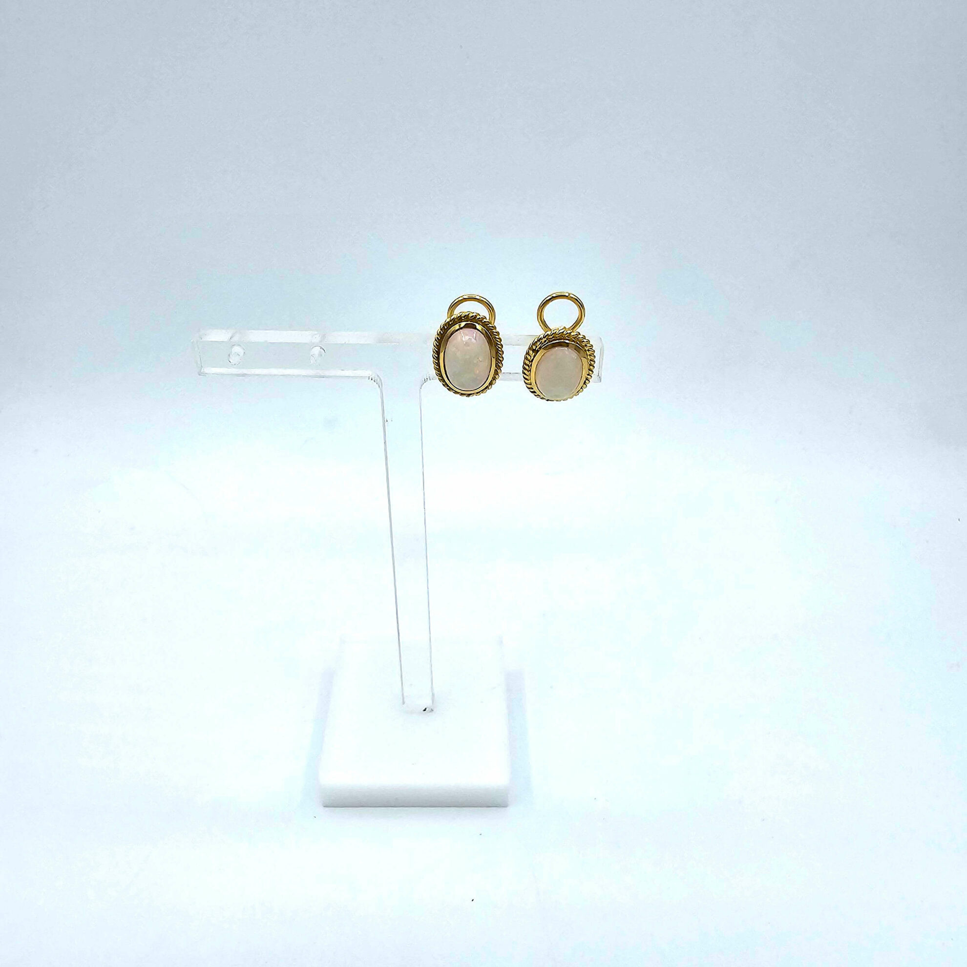 Boucles D’Oreilles Opale Blanche Or Jaune 18K, Poids 6,77g
